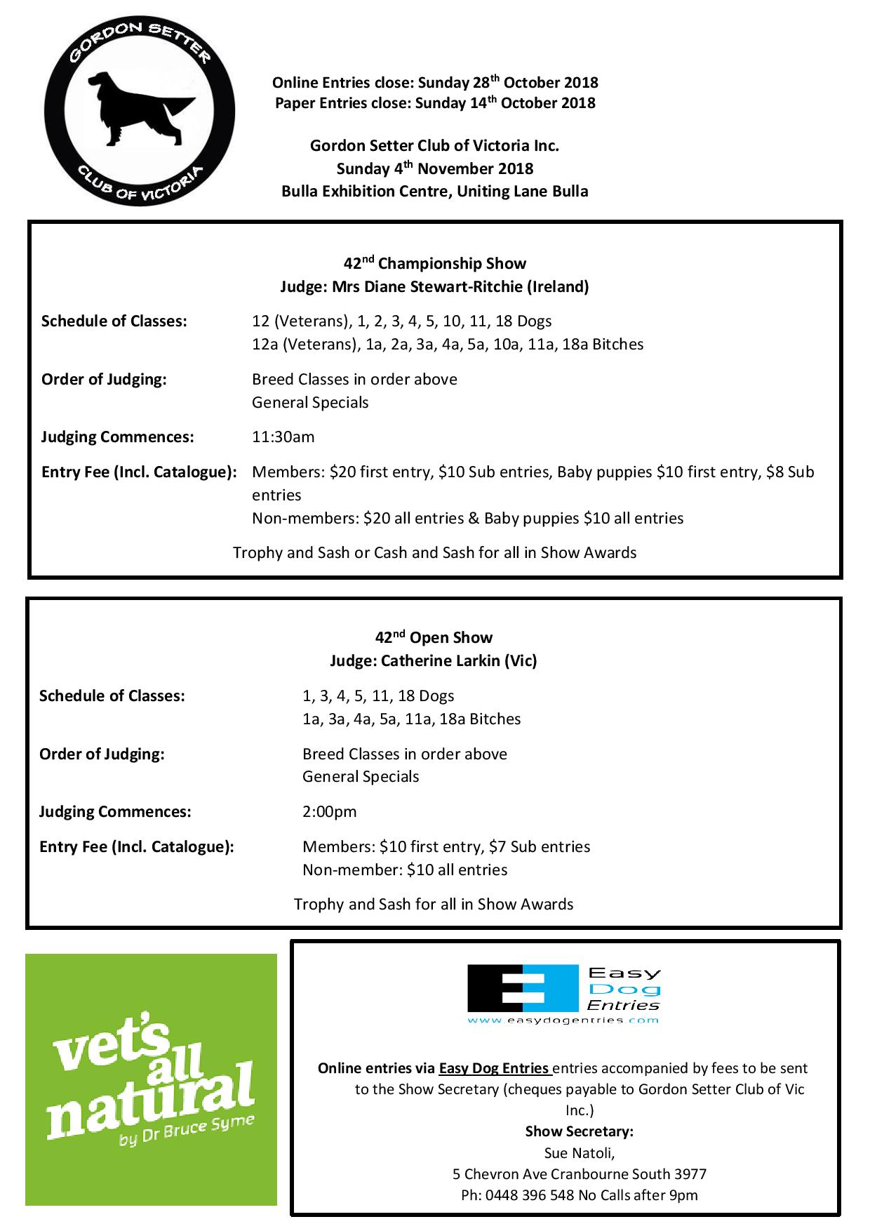 Gordon Setter Club of Victoria 46th Open Show 2024